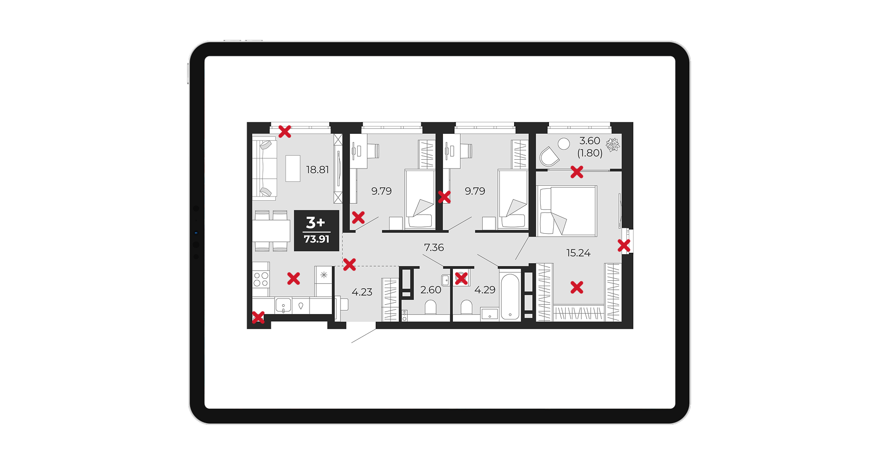 Сервис может быть расширен функционалом Витрины объектов, где происходит полноценный процесс выбора и покупки квартиры.
